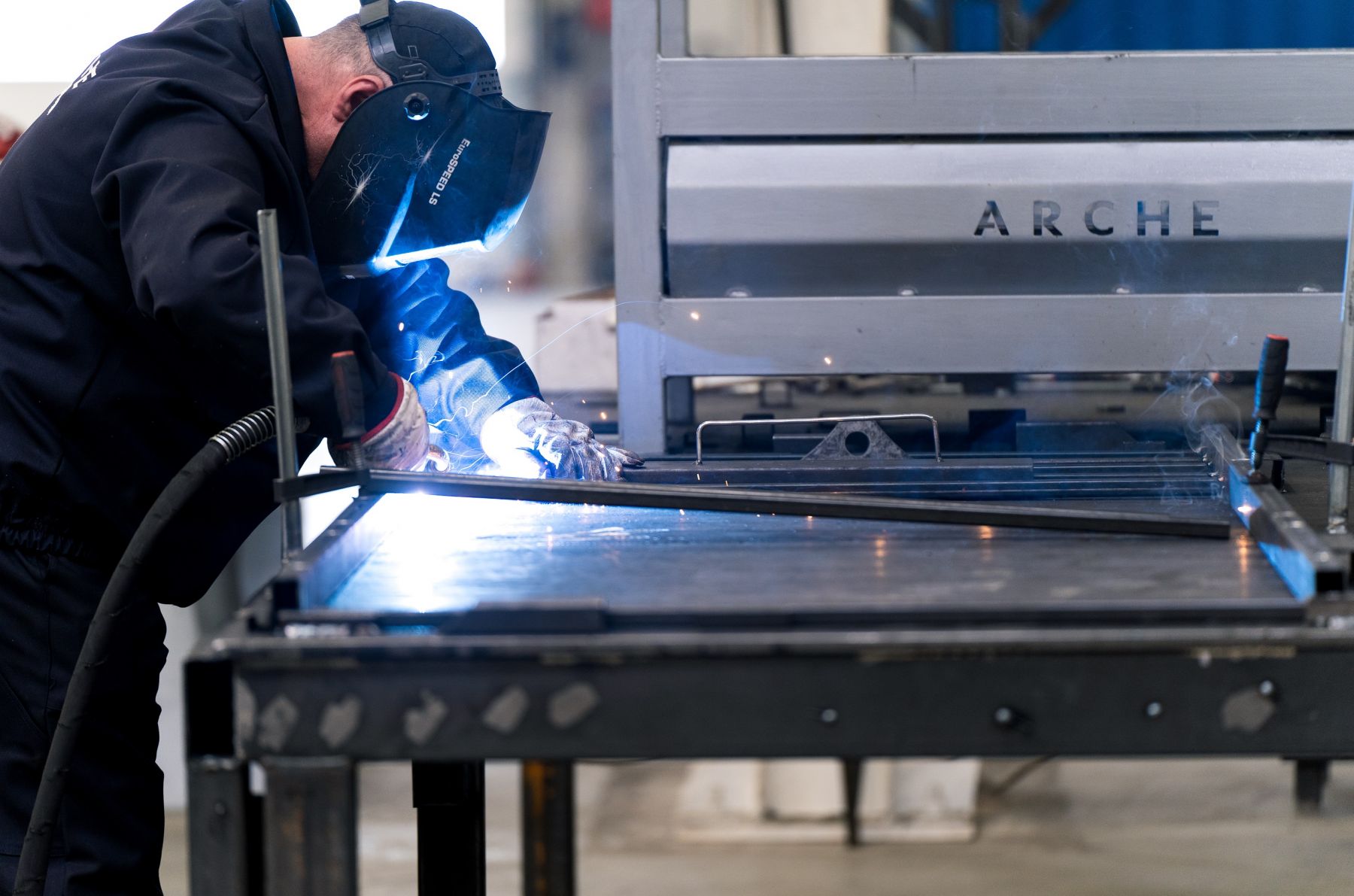 To tutaj są wykonywane prefabrykaty i konstrukcje stalowe na potrzeby ArcheSiedlisko - przekształcanie kontenerów morskich w obiekty noclegowe, na potrzeby Grupy ARCHE oraz dla klientów zewnętrznych.